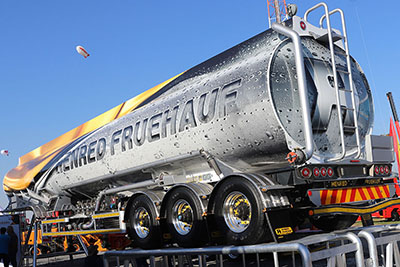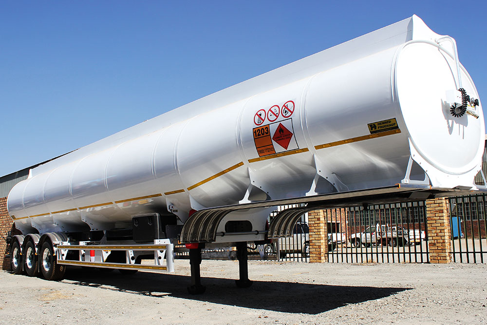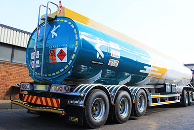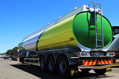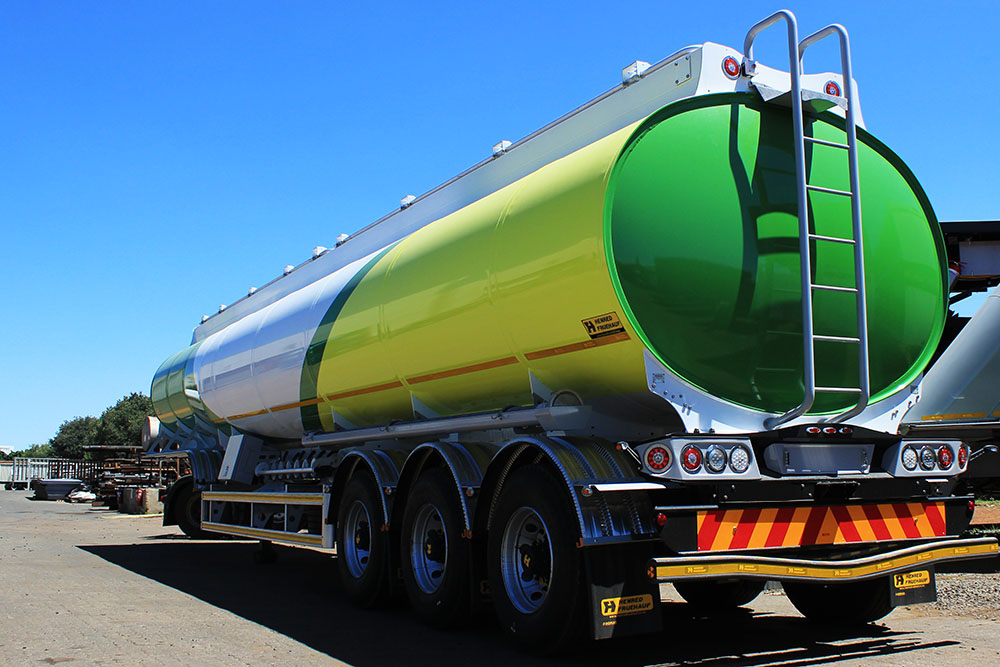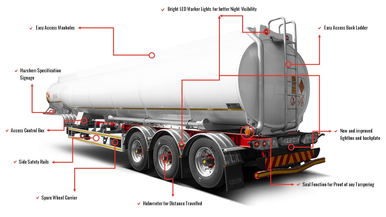 The Iconic SA Truck Bodies / Henred Fruehauf rear end design incorporating led lights, chevron and backplate to the NRTA and SANS Dangerous Goods Specification